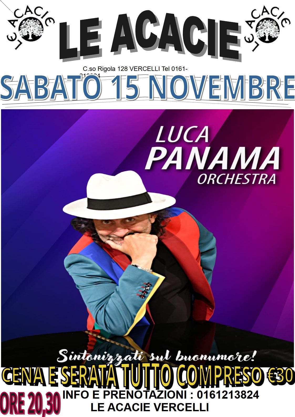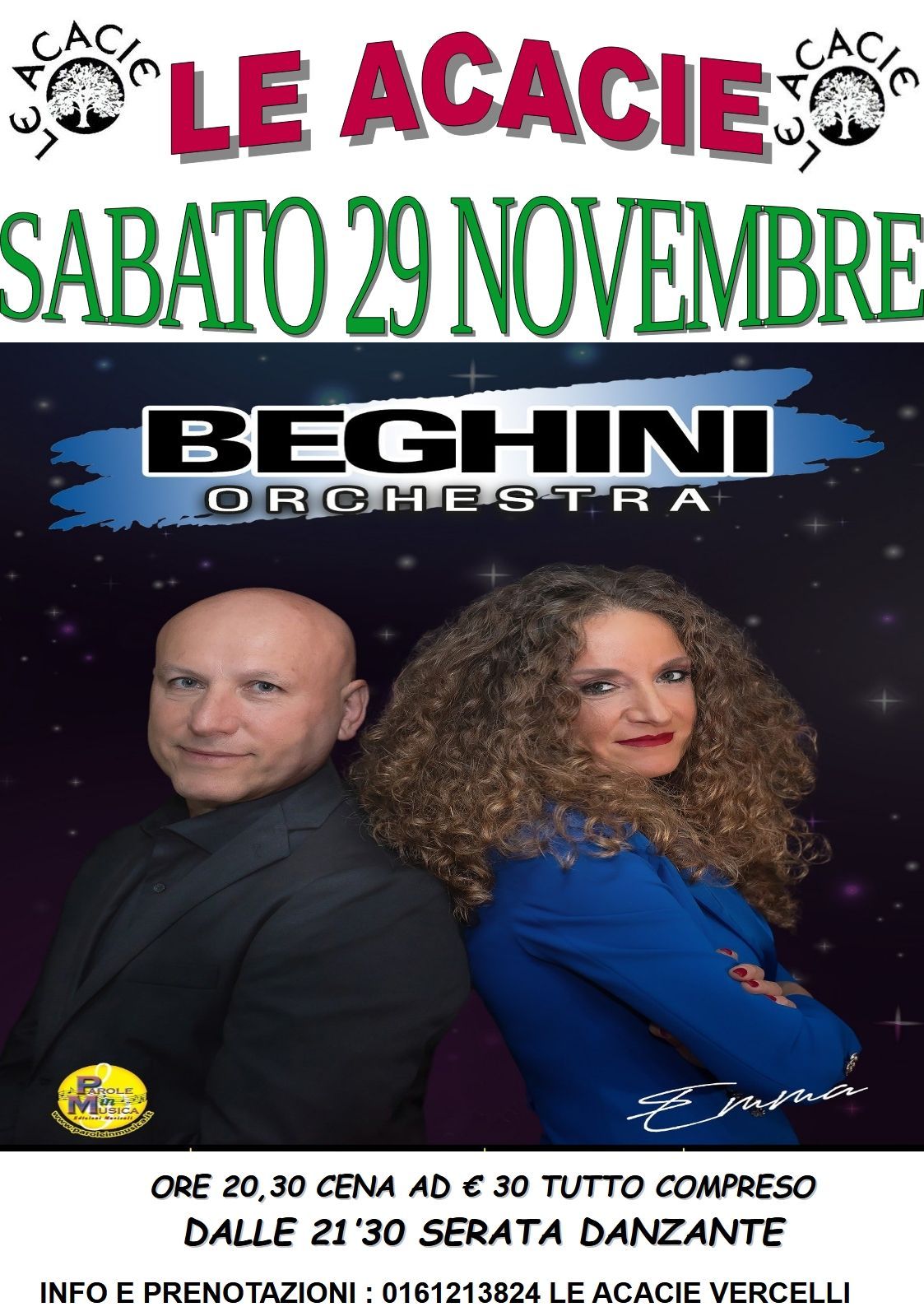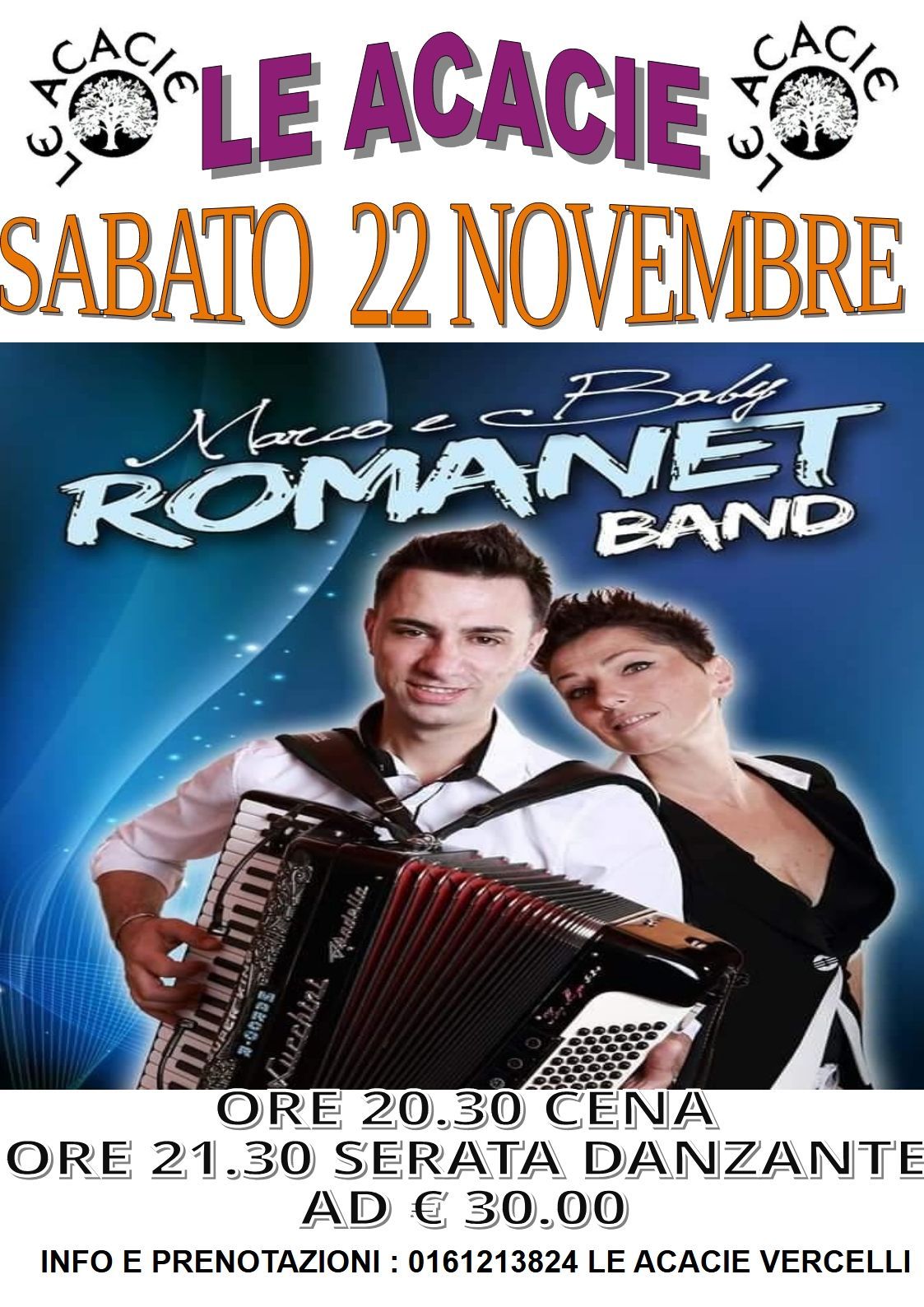 Le Acacie è un ristorante pizzeria con centro sportivo e discoteca annessa. Il locale è una storica realtà di Vercelli che da oltre 40 anni delizia i clienti con autentiche specialità tipiche della cucina piemontese. Franco e Adriano, i titolari dell'attività, sono da sempre apprezzati per la qualità dei manicaretti cucinati e per l'atmosfera serena e conviviale che hanno saputo ricreare e portare avanti negli anni. Oggi il ristorante porta avanti la tradizione iniziata nel 1972 con la pizzeria Marechiaro, uno storico locale nato sotto i portici di Pizza Cavour nel cuore della città.